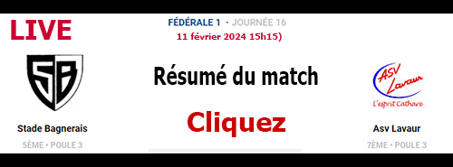 Fédérale 1 Poule 3 : Bagnères 34 Lavaur 22