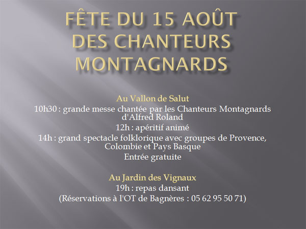• 15 août : fête des Chanteurs Montagnards d’Alfred Roland