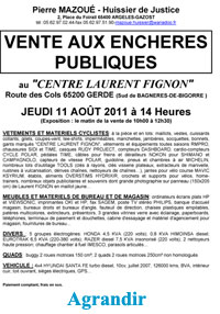 Le jeudi 11 août 2011, à 14h : Vente aux enchères publiques au "centre Laurent Fignon" par Me Pierre Mazoué, huissier de justice